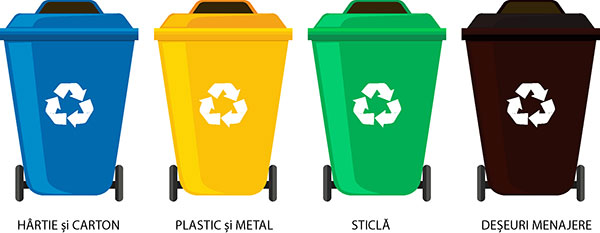 Containerele pentru colectarea selectivă sunt marcate pe culori, în funcție de tipul de deșeuri pentru care sunt destinate, astfel: