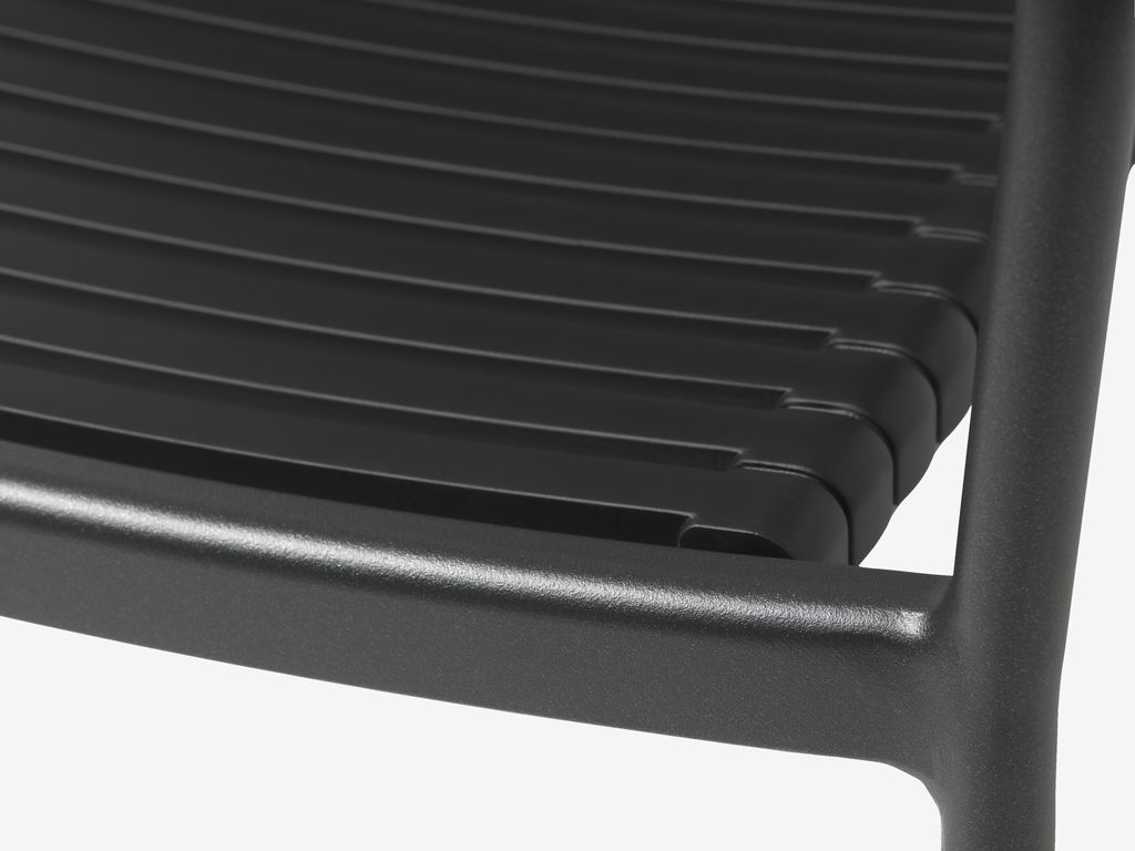 The chair looks modern, is light and can be kept outside. I like it a lot. Also quite comfortable to sit in. Good value (after 30% discount).