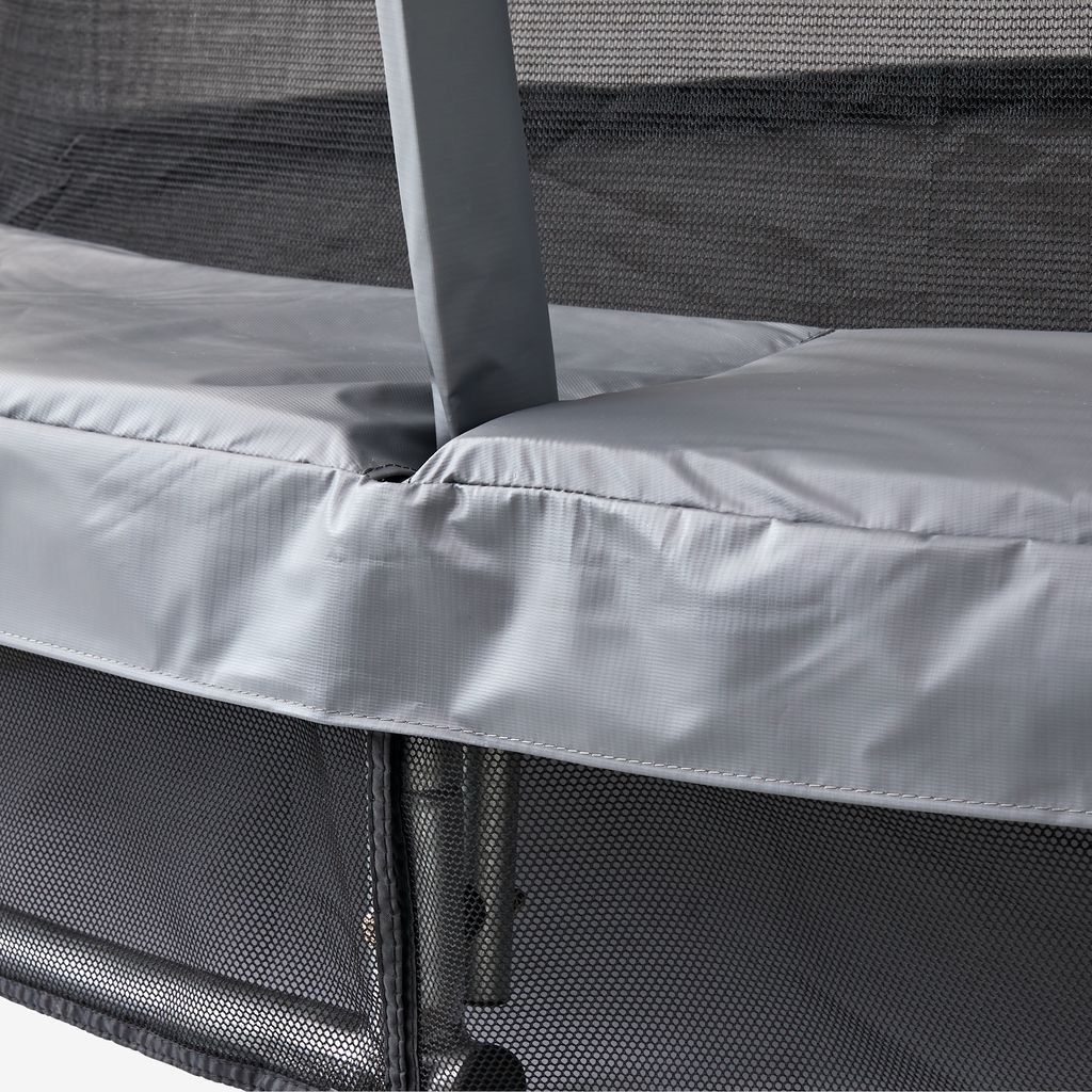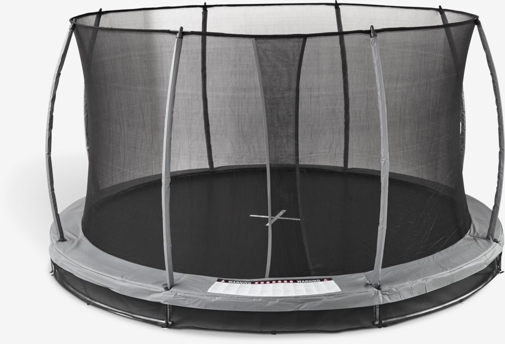 De asemenea, poate fi o idee bună să investești într-o plasă de siguranță, indiferent dacă cumperi o trambulină montată pe pământ sau un model care se montează deasupra solului pentru ca siguranța să fie pe primul loc. Dacă alegi o trambulină de sine stătătoare, este recomandat să iei și o plasă pentru trambulină sau o protecție pentru trambulină în caz de furtună puternică și vânt.