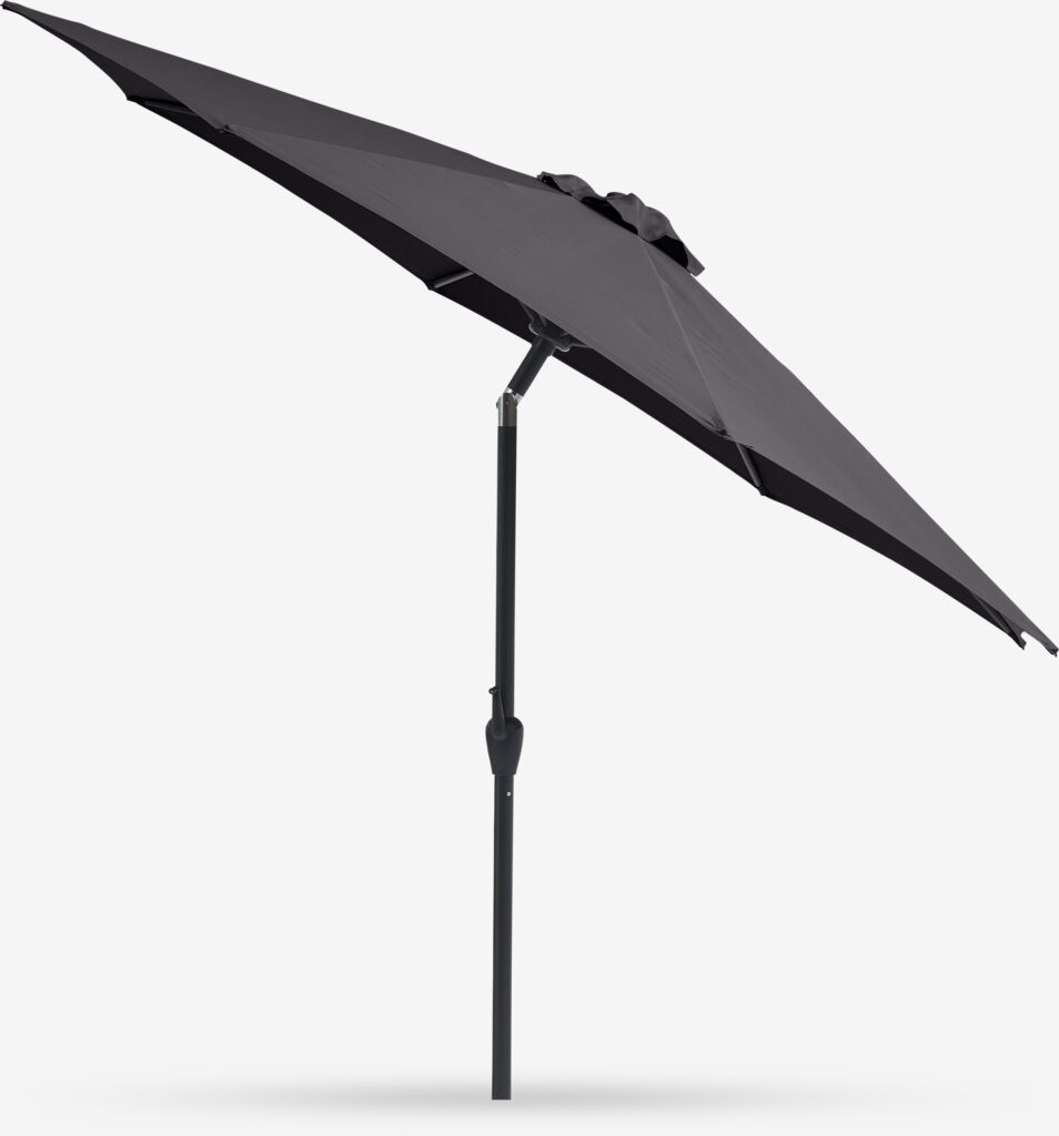 Relaxează-te la umbră cu umbrela de soare HALK. Dispunând de funcție de înclinare, manivelă, calotă cu protecție UV și impermeabilă și picior din oțel robust, această umbrelă de soare gri închis este potrivită pentru aproape orice spațiu exterior. Ø300x248 cm